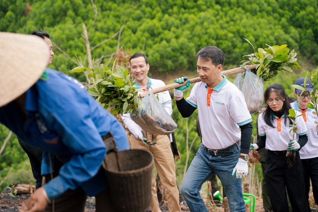 Các TNV ABBANK cùng người dân xã Thông Thụ tham gia trồng cây quế giống – bước khởi đầu cho sinh kế bền vững tại địa phương
