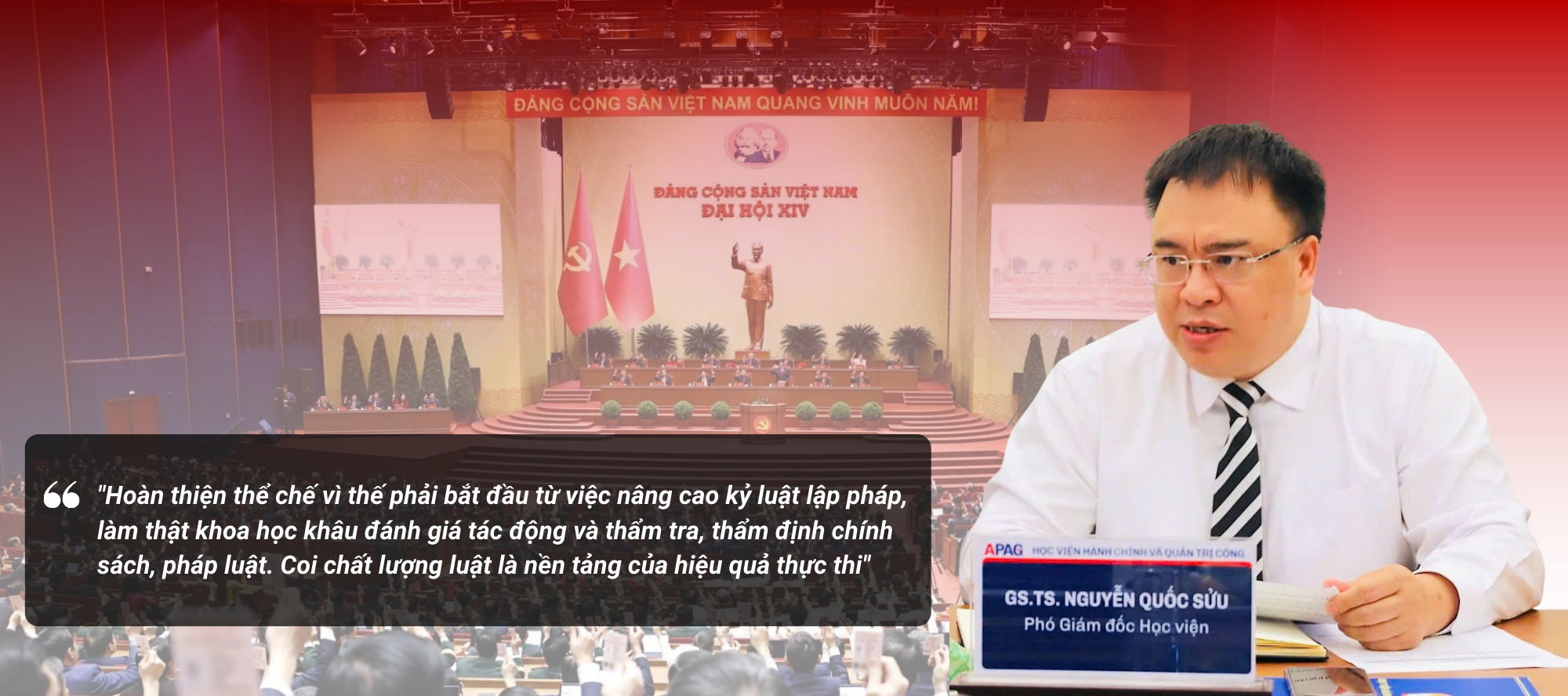 GS.TS. Nguyễn Quốc Sửu: Điều tôi đặt niềm tin và kỳ vọng lớn nhất ở Đại hội XIV của Đảng, không chỉ là những mục tiêu phát triển cao hơn, mà là sự chuyển hóa mạnh mẽ từ tư duy sang hành động, từ cam kết chính trị sang năng lực thực thi thực chất. Tôi tin rằng Đại hội XIV đã đặt đúng trọng tâm khi nhấn mạnh kỷ luật thực thi, trách nhiệm cá nhân và hiệu quả quản trị như những chuẩn mực mới của năng lực cầm quyền, năng lực quản trị. Khi Đảng không chỉ lãnh đạo bằng đường lối, mà còn bằng yêu cầu rất rõ ràng về kết quả, thì đó chính là nền tảng quan trọng nhất để xây dựng một Nhà nước pháp quyền xã hội chủ nghĩa hiện đại, liêm chính và hành động.