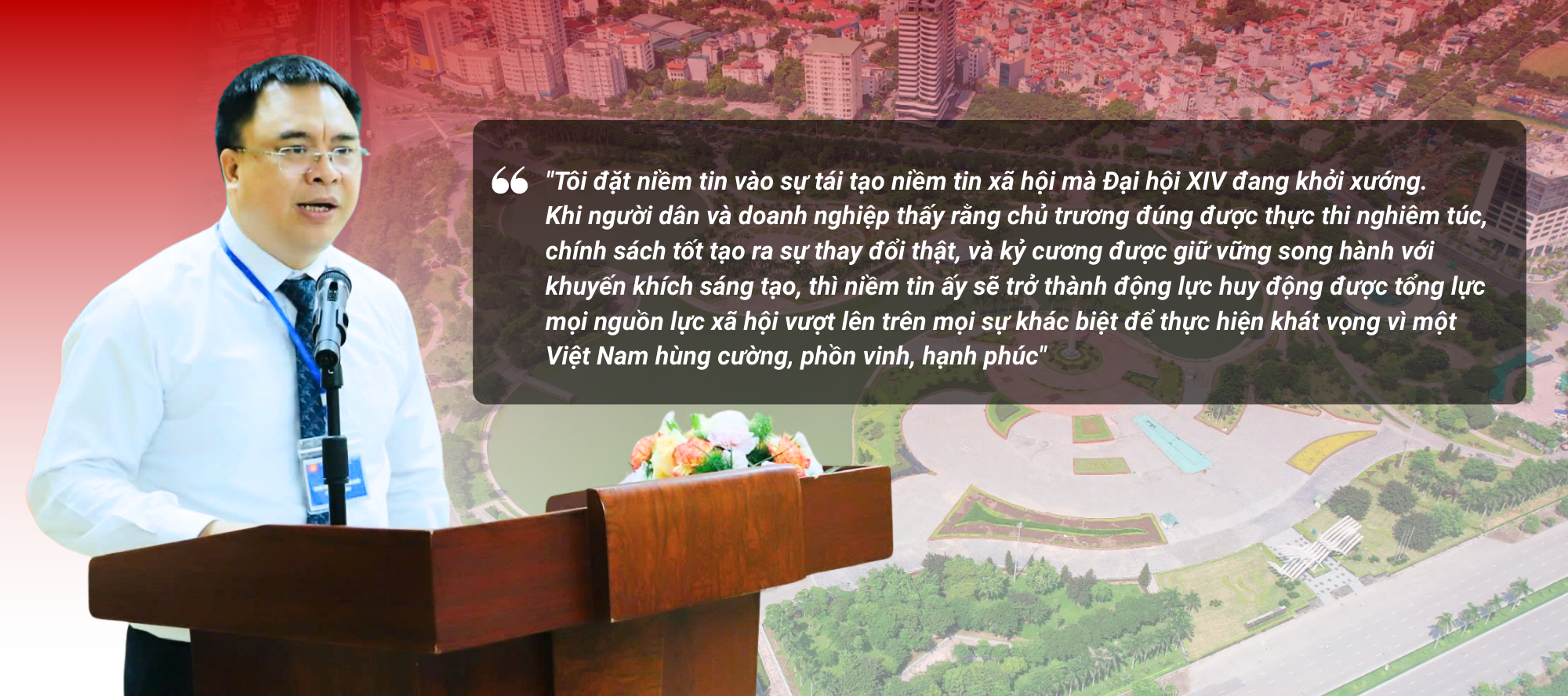 Có thể nói, kỳ vọng lớn nhất của tôi ở Đại hội XIV là một khởi đầu mới cho nền quản trị quốc gia hiện đại, hiệu quả. Nơi mỗi quyết sách đều hướng tới nâng cao chất lượng cuộc sống của người dân và mỗi bước phát triển đều bền vững hơn, vững chắc hơn cho tương lai của dân tộc.