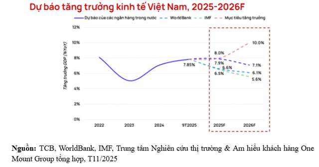 Trước hết, nền kinh tế vĩ mô ổn định tạo tâm lý lạc quan cho người mua. Dự báo GDP năm 2025 đạt 7,9%, năm 2026 đạt 7,1%, trong nhóm cao nhất khu vực. Lãi suất duy trì ổn định từ giữa năm 2025 giúp người mua chủ động hơn trong kế hoạch tài chính trung – dài hạn.