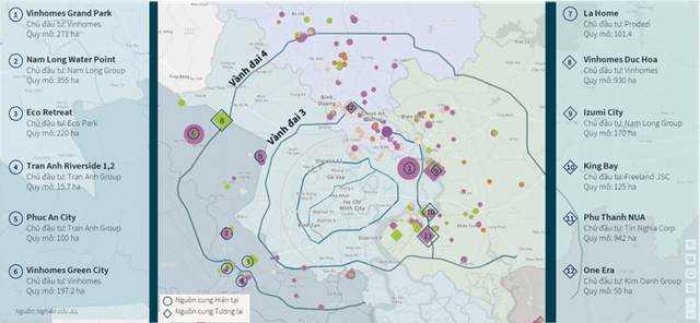 Bản đồ hiện trạng nguồn cung các dự án nhà ở và thương mại tại TPHCM