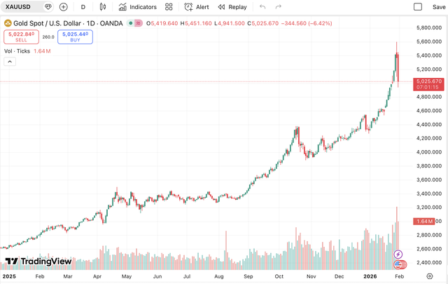 Sau chuỗi tăng “phi mã” ngay từ những ngày đầu năm 2026 và lập kỷ lục mới gần 5.600 USD/ounce vào ngày 29/1, giá vàng thế giới bất ngờ chứng kiến một phiên biến động cực mạnh, kéo theo giá vàng trong nước đảo chiều giảm sâu.