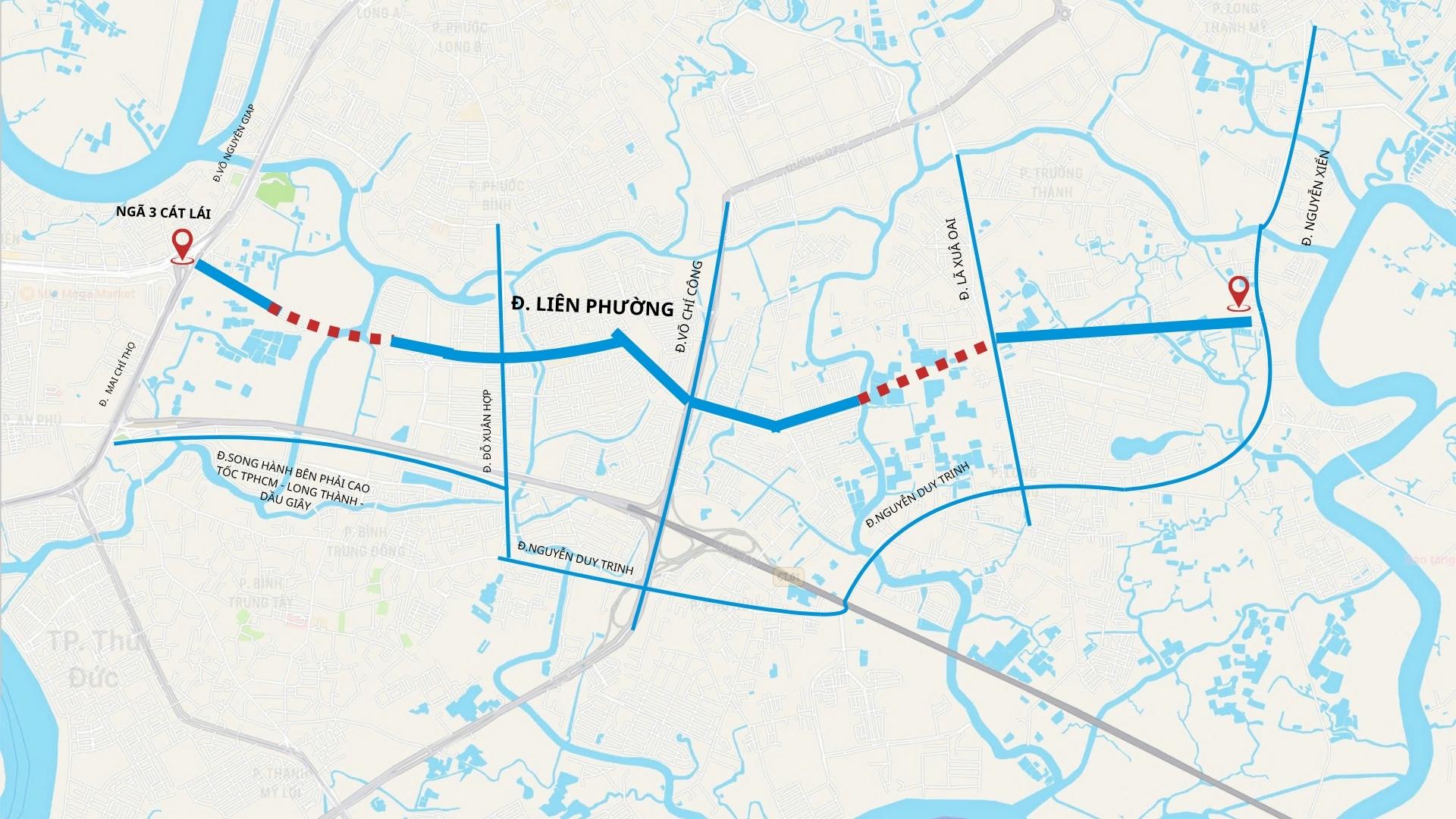 Tuyến đường Liên Phường TP Thủ Đức. Đồ họa: Lê Vũ