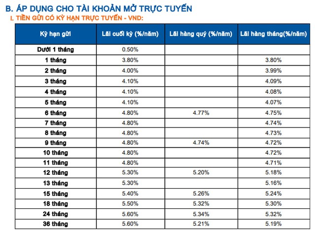 Mức tăng mạnh nhất trong đợt điều chỉnh này được áp dụng cho tiền gửi kỳ hạn 5 tháng tại quầy.