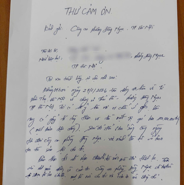 Công an phường đã bàn giao lại đầy đủ tài sản thất lạc cho anh V. một cách công khai, đúng trình tự, quy định của pháp luật. Cảm kích trước sự hỗ trợ tận tình của lực lượng Công an và người dân, anh V. đã viết thư cảm ơn gửi Công an phường Đông Ngạc và ông Luận. Qua đó lan tỏa nét đẹp văn hóa trong ứng xử của người dân phường Đông Ngạc và hình ảnh lực lượng Công an cơ sở chính quy, tinh nhuệ, “vì Nhân dân phục vụ” – là điểm tựa của người dân trong mọi hoàn cảnh.