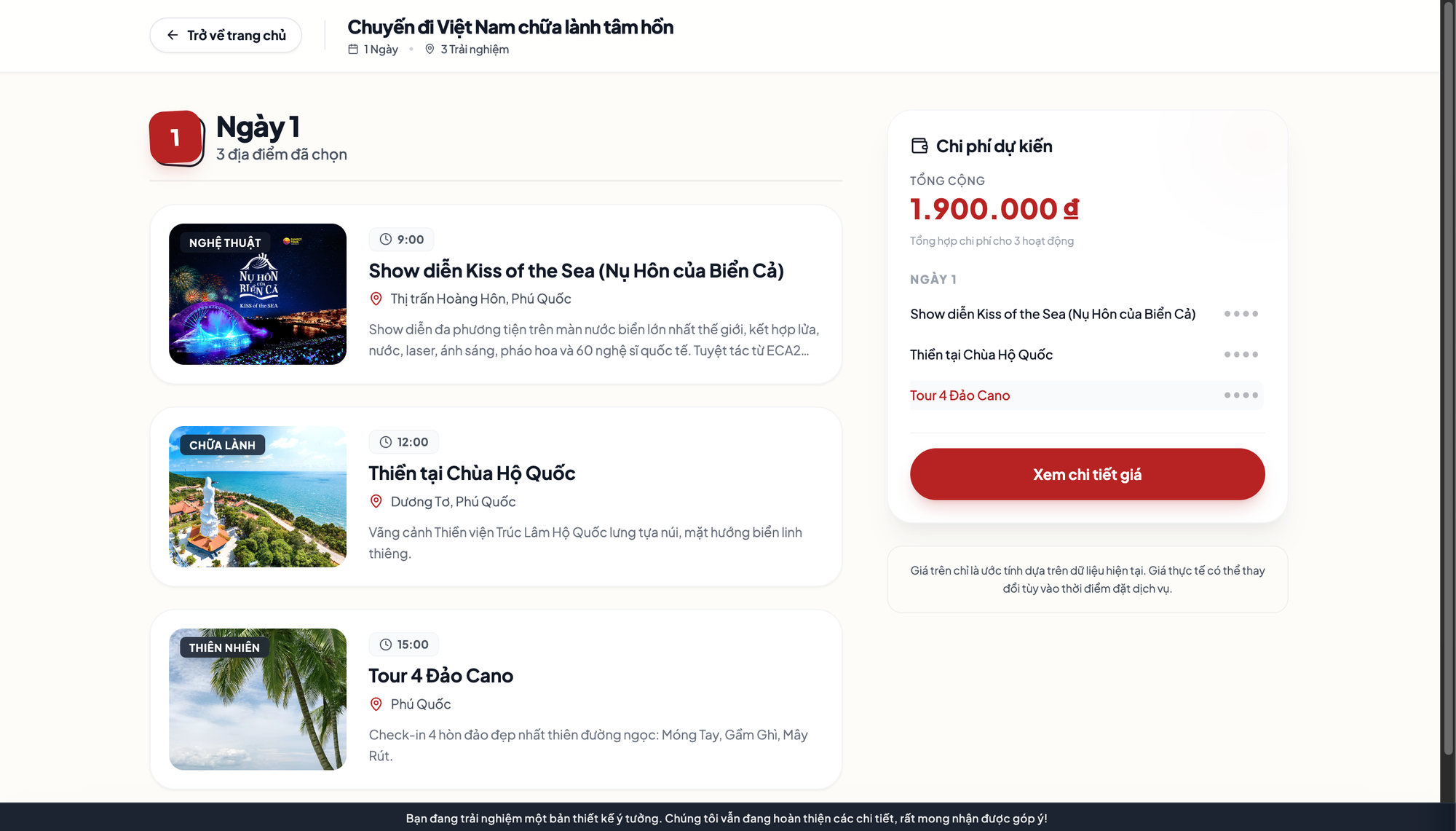 Song song với vai trò dữ liệu, Visit Vietnam được phát triển như một trợ lý du lịch ảo - AI Travel Assistant- đồng hành xuyên suốt toàn bộ hành trình của du khách, hỗ trợ du khách tạo lịch trình cá nhân hóa; đặt dịch vụ lưu trú, vé tham quan, tour hoặc phương tiện di chuyển; quản lý toàn bộ lịch trình trong một giao diện thống nhất; tra cứu thông tin điểm đến theo thời gian thực; nhận cảnh báo về tình trạng đông đúc, thời tiết hoặc thay đổi tại điểm đến.