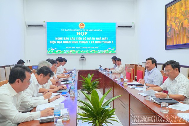 Sáng ngày 13/1, ông Trịnh Minh Hoàng – Phó Chủ tịch UBND tỉnh Khánh Hòa chủ trì cuộc họp với các sở, ban, ngành và địa phương liên quan nhằm nghe báo cáo tiến độ triển khai dự án Nhà máy điện hạt nhân Ninh Thuận 1 (xã Phước Dinh) và dự án Nhà máy điện hạt nhân Ninh Thuận 2 (xã Vĩnh Hải).
