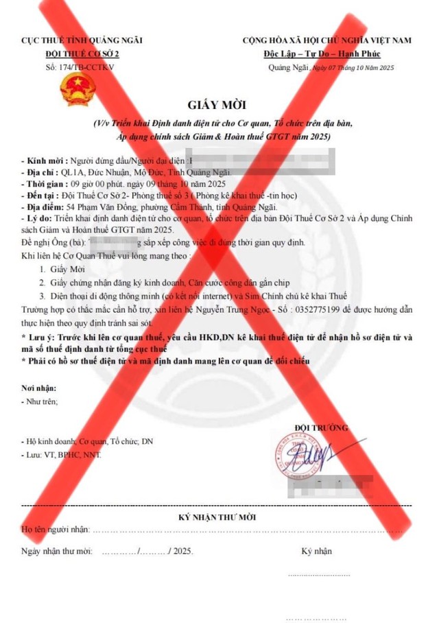 Theo Công an tỉnh Quảng Ngãi, trong thời gian gần đây, trên địa bàn tỉnh xuất hiện thủ đoạn lừa đảo mới, tinh vi, nhắm vào các hộ kinh doanh nhỏ lẻ, với chiêu thức giả mạo Giấy mời của Cơ quan Thuế nhằm chiếm đoạt tài sản.